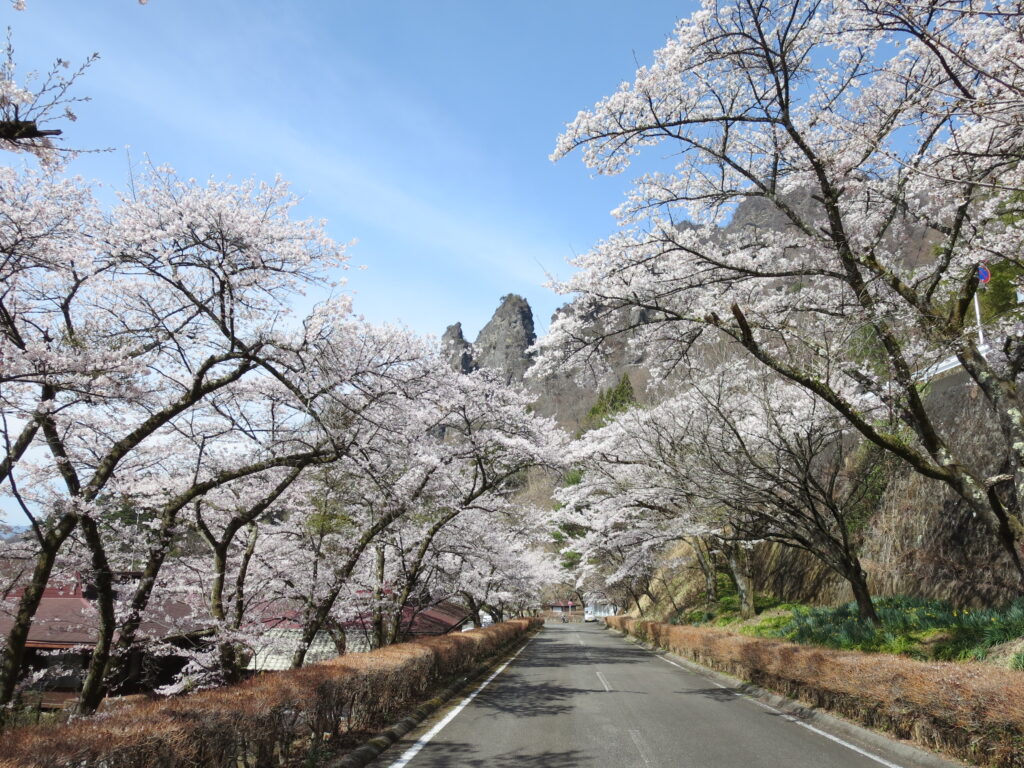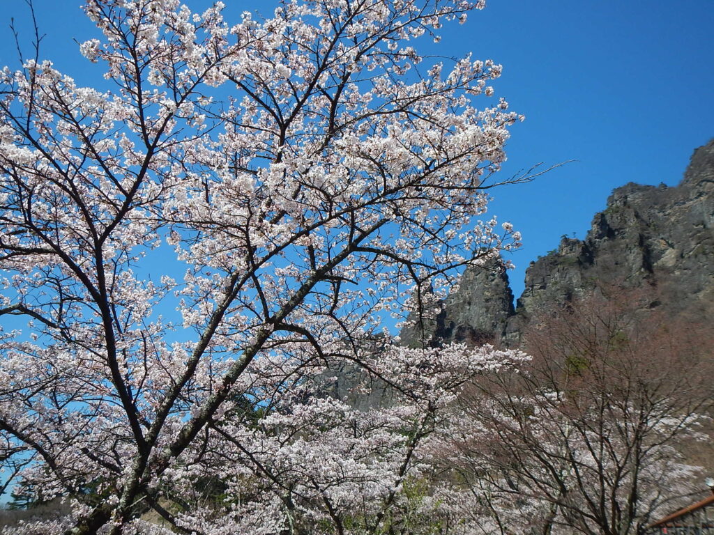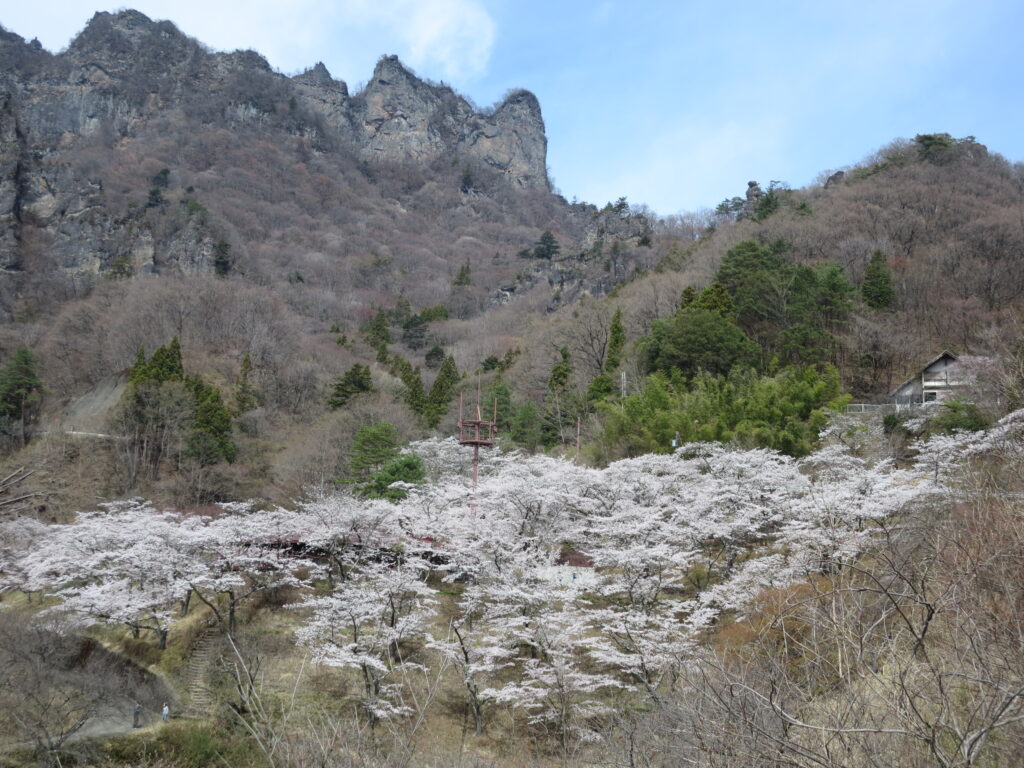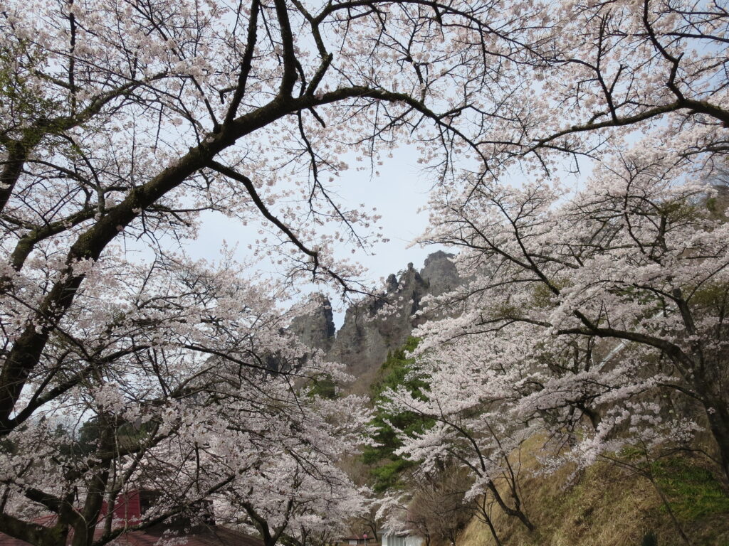 令和8年4月6日(月) ソメイヨシノの背景は妙義山 (一の沢園地西側の尾根から)