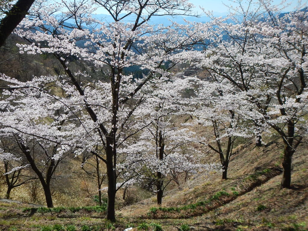 青空の下「ソメイヨシノ」 絶好のお花見日和 (管理棟駐車場南側)